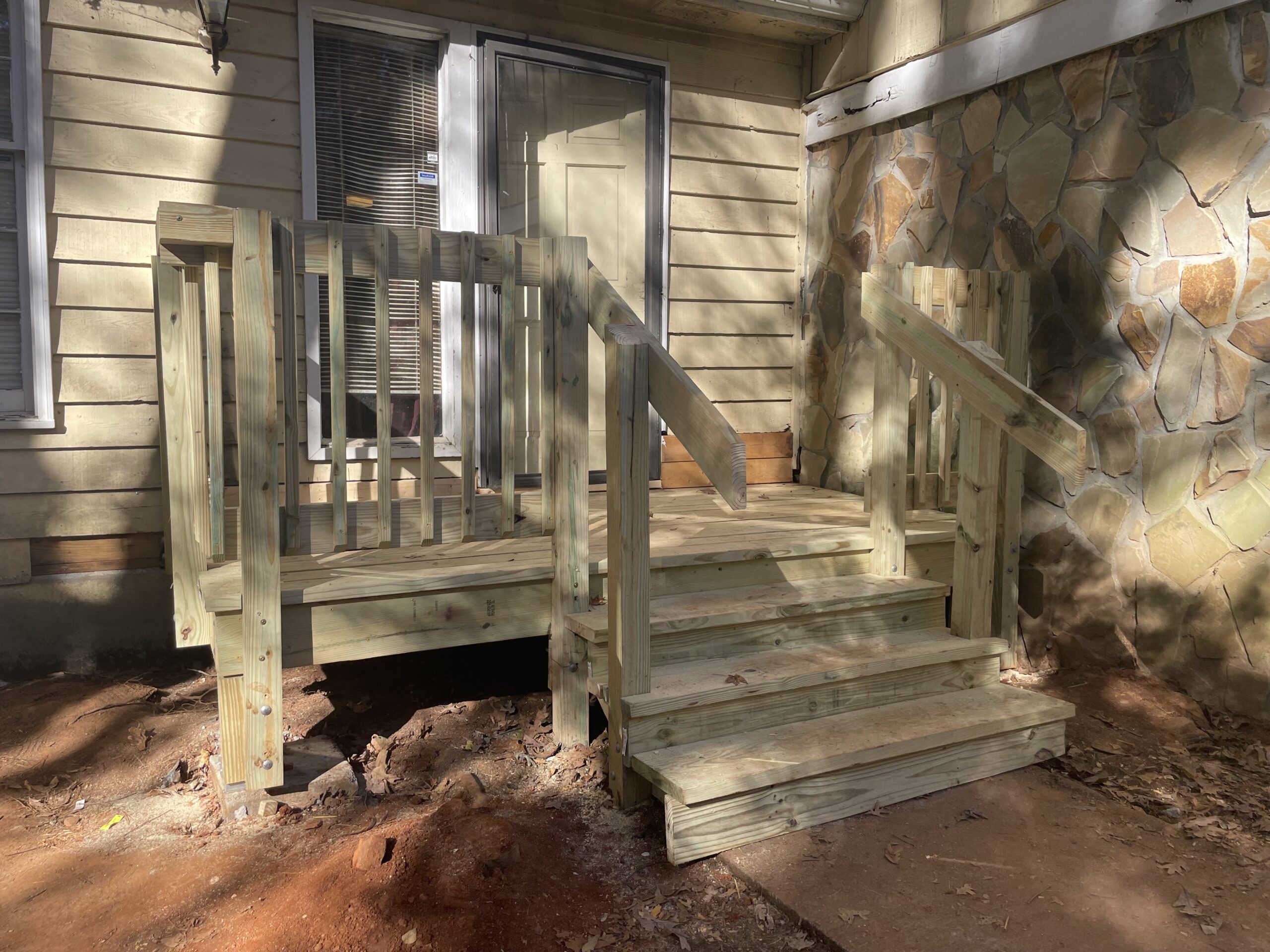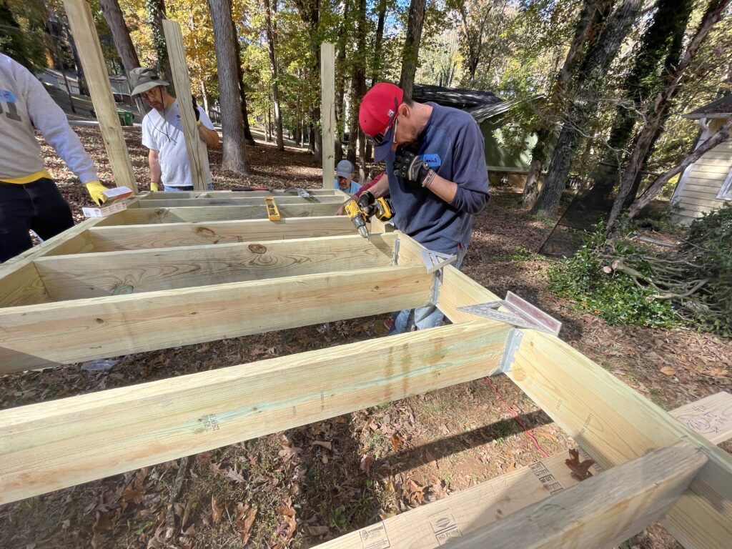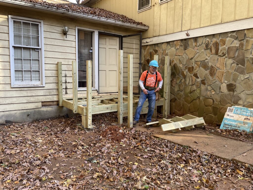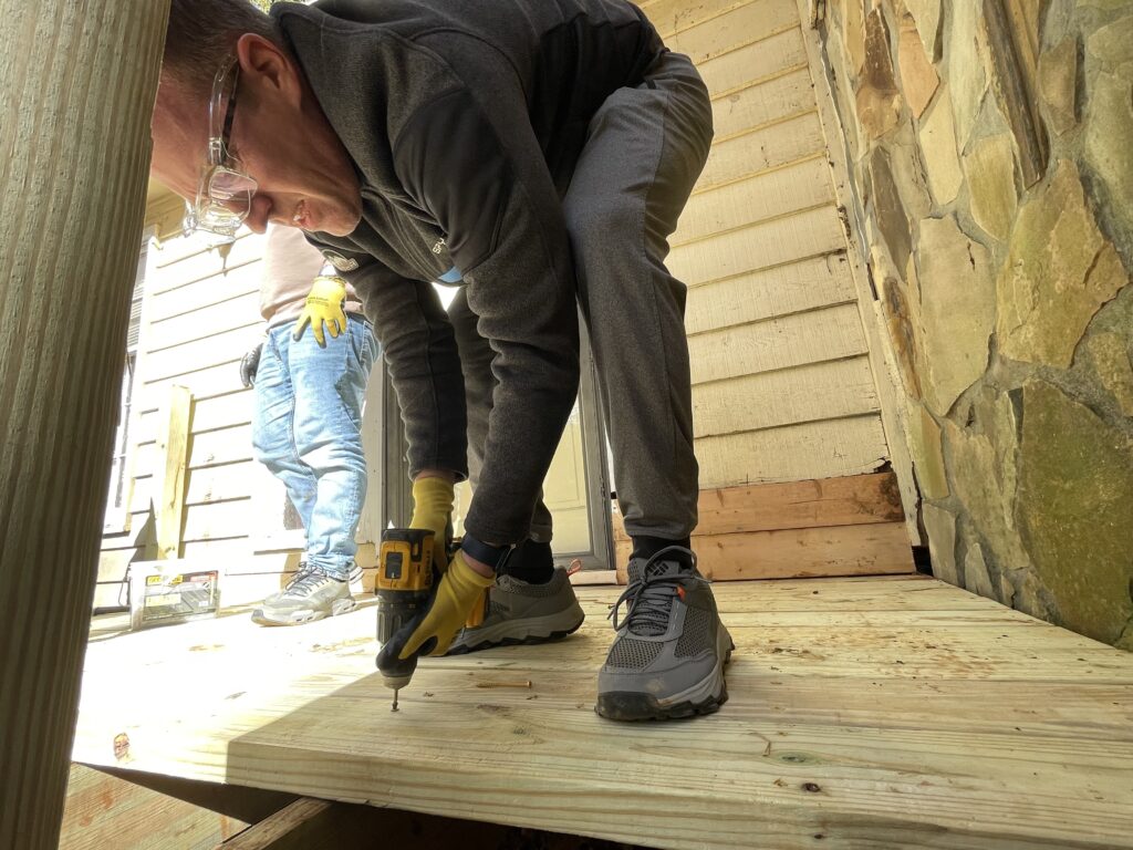 The Bowers were incredibly warm and welcoming to every volunteer who walked through their door, often preparing breakfast or lunch for the teams. Their front porch, however, told a different story. Years of wear had left it rotting and unsafe, forcing them to rely on the garage as their main entrance. That door opened to a steep drop—an everyday risk with real potential for serious injury. Still, the Bowers moved through each day with resilience and gratitude.