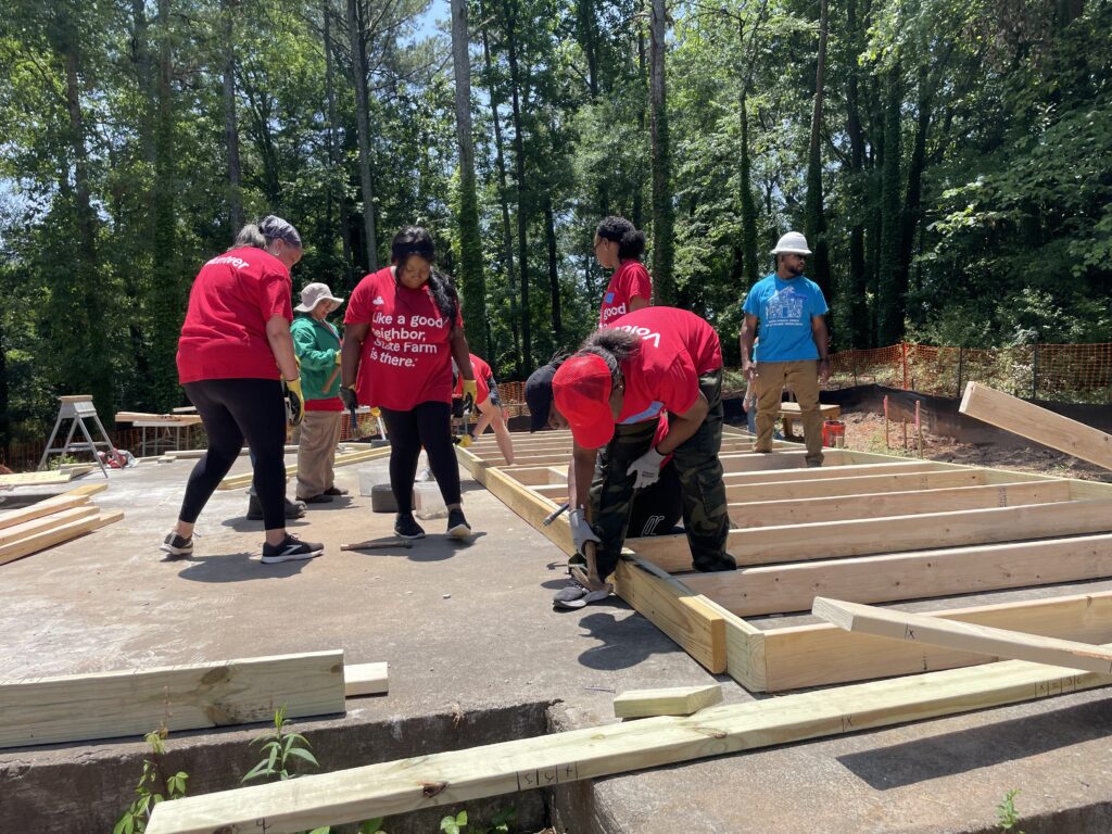 The first volunteer team, State Farm, arrived the following week to frame the first walls. Before long, the structure began to take shape—the frame, sheathing, and roof quickly standing as signs of progress and purpose.