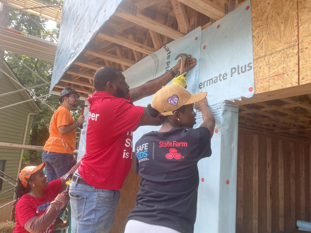 As construction continued, Habitat DeKalb selected Ms. Shantescia (Shan) as the future homeowner. For Shan, this wasn’t just about receiving a house—it was about reclaiming stability, independence, and peace for her family. She poured her own sweat equity into the project, working alongside volunteers and learning every step of the process.